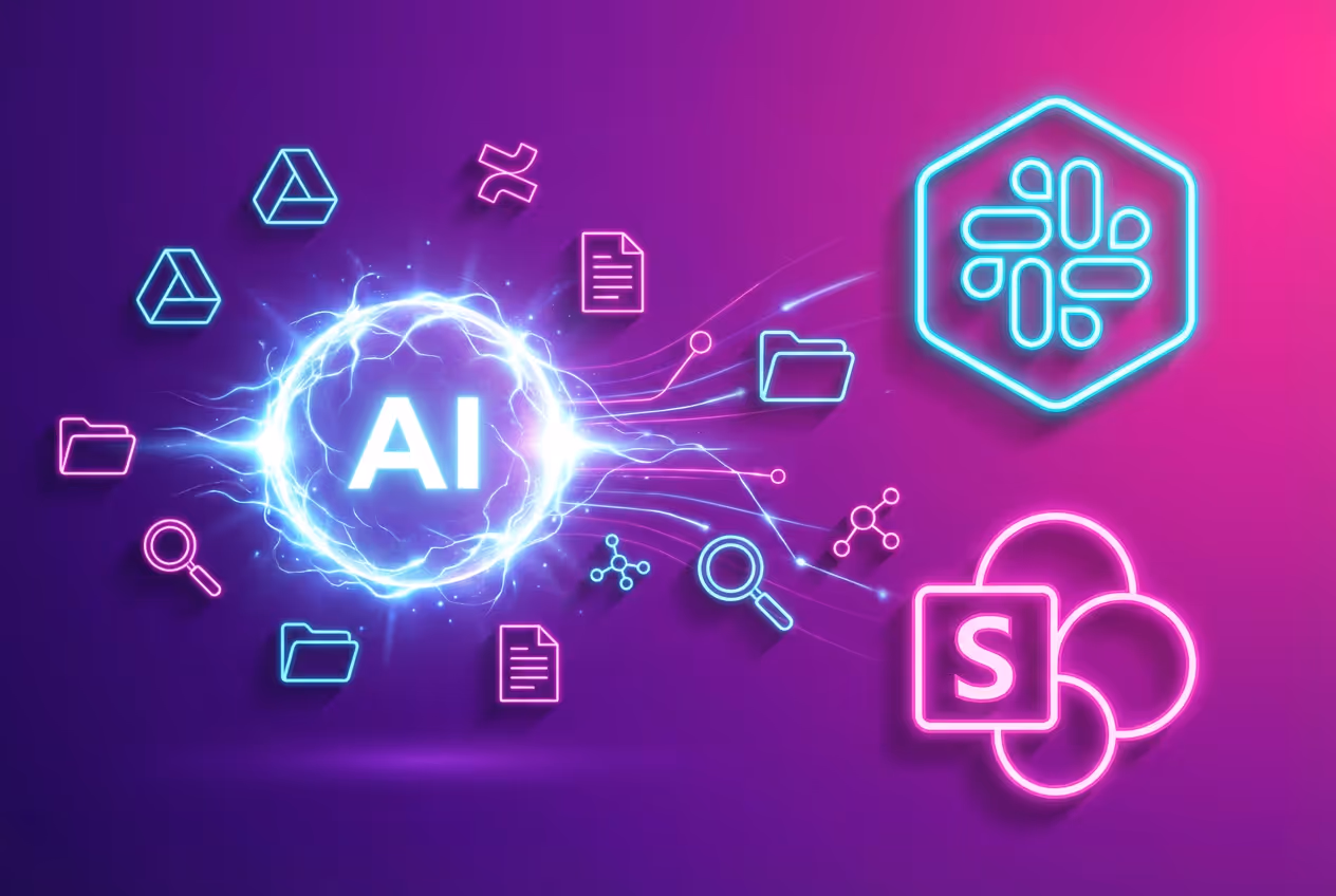 The problem isn't lack of information. It's too much information spread across too many places. Your company data lives in SharePoint, Google Drive, Slack, Jira, Confluence, email, CRM systems, and dozens of other tools. Each system has its own search interface. Each returns different results. None of them talk to each other.